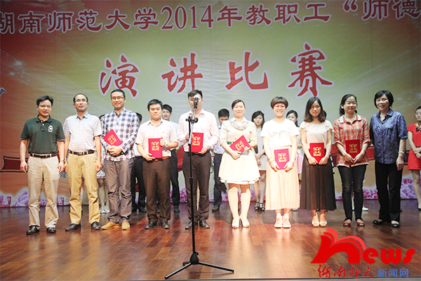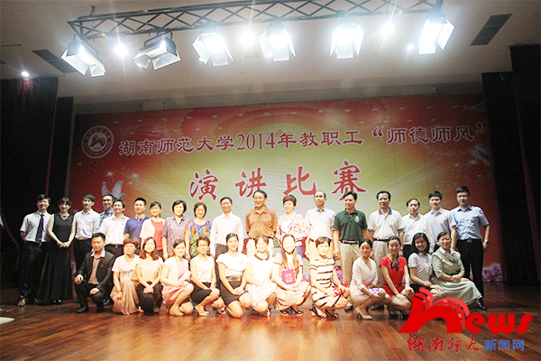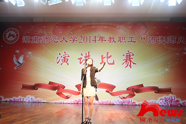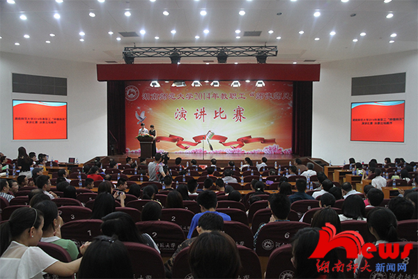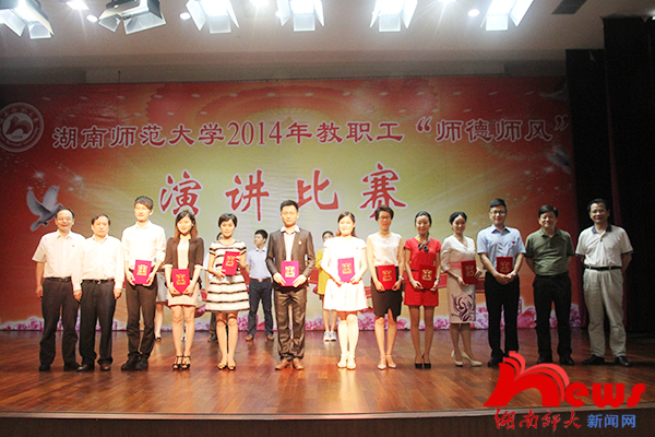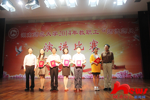 (记者 王乐 葛宣明)6月5日下午,学校2014年教职工“师德师风”演讲比赛在国际学术报告厅举行。校长刘湘溶,常务副校长卢岳华,副校长蒋洪新、杨小云,原副校级督导员、党委组织部部长徐书华等观看比赛。湖南省教育工会主席高新明,省委派驻高校第二督导组成员甘智林、刘美生,我校纪委书记廖志坤,以及袁涤非、向梅林、李培超、陈晖、蔡颂等专家担任比赛评委。