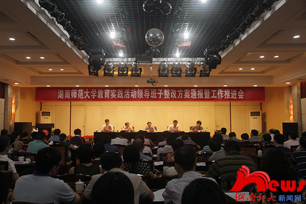 (记者 粟用湘 马子悦)9月2日上午,学校在红楼5楼会议室召开党的群众路线教育实践活动领导班子整改方案通报暨工作推进会。省委派驻高校第二督导组副组长、湖南文理学院正院级督导员石子球,我校党委书记李民、校纪委书记廖志坤、校活动办副主任徐书华、党委组织部部长周劲松出席会议。会议由廖志坤主持。