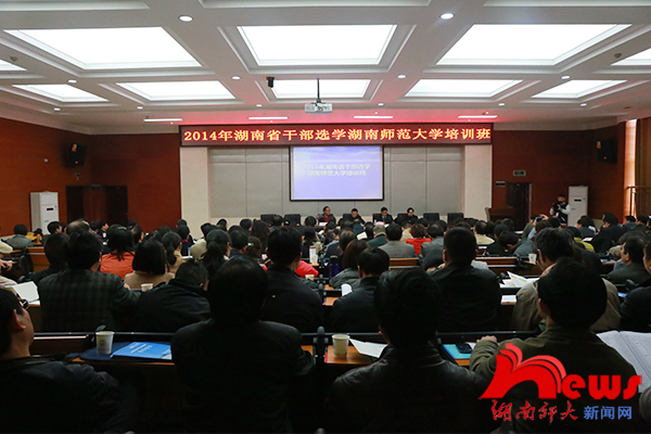 (记者 杨俊凯 实习记者 谭梦 刘敏)11月12日下午,2014年湖南省干部选学培训班开班仪式在我校新化工楼二楼报告厅举行。省委组织部干部教育处处长甘力琛,我校党委书记李民、校长刘湘溶、校党委副书记蒋冀骋,省委组织部干部教育处副处长邓永宏出席开班仪式。仪式由蒋冀骋主持。