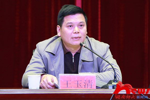 王玉清结合对我校的督导工作,总结了我校教育实践活动的五个特点:一是坚持领导带头、以上率下,切实发挥党委一班人的示范带动作用;二是坚持把学习教育、听取意见贯穿始终,注重打牢思想基础;三是坚持正确的宣传引导,主动营造浓厚的舆论氛围;四是坚持从严要求,两手抓、两促进,确保整个活动不走过场;五是坚持立行立改、建章立制,注重以实际成效取信于民。王玉清强调,转变作风、服务群众永远在路上。总结会后,湖南师大的同志们要以更加认真的态度、更加严格的标准、更加严明的举措和更加严肃的纪律,抓好后期各项工作,特别是整改落实工作,确保活动善始善终、善做善成。他代表督导组向我校提出三点要求:一要继续深化学习,进一步提高对党的群众路线的认识;二要以“钉钉子”精神持续抓好整改落实,不断巩固扩大教育实践活动成果;三要继续抓好建章立制,推动作风建设常态化长效化。王玉清希望我校在学校党委的坚强领导下,在全校师生员工的共同努力下,一心一意谋发展,聚精会神抓党建,顺利完成教育实践活动各项后续任务,早日建成具教师教育特色、国内一流、国际上有一定影响的综合型大学。