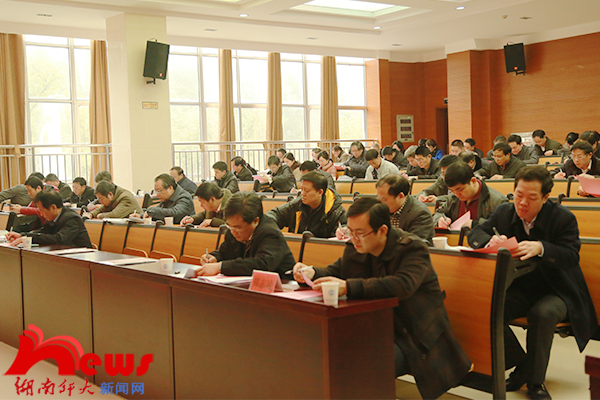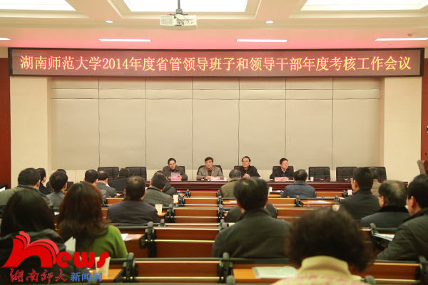 (记者 徐昊/文 陈明翠/摄影)1月16日上午,学校省管领导班子和领导干部2014年度考核工作会议在新化工楼二楼报告厅举行。省委组织部干部四处副处长朱正华、省委教育工委组织部干部郑志凌出席会议。校党委书记李民、校长刘湘溶作述职报告,校党委副书记蒋冀骋主持会议。