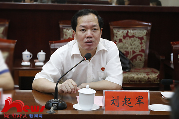 刘起军向山东高校组织部长考察团的到来表示热烈欢迎,并向考察团介绍了我校的办学历史、办学规模、师资力量和学科建设等基本情况。