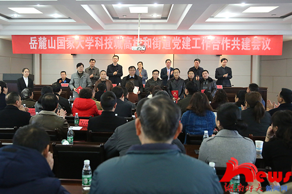 我校相关单位负责人及湖南大学、桔子洲街道相关负责人等100余人参加会议。