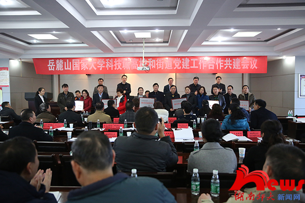 街校党建合作共建工作由我校党委组织部、湖南大学党委组织部和岳麓区桔子洲街道工委联合开展,该项工作以“五联五建”为抓手,通过组织联网,构建融合共建的区域化党组织覆盖体;阵地联建,构建功能共享的区域化党建平台共享体;党员联动,构建互利共促的区域化党员教育管理体系;活动联谊,构建特色共显的区域化党建服务品牌体系;实事联办,构建合作共赢的区域化党建制度保障体系,进一步创新高校和街道党建工作,凝聚岳麓山国家大学科技城区域建设发展合力。工作推进过程中,学校将选聘一批兼职教授组建“大科城教授名师团”,到社区(村)党组织讲课,从街道选聘街道党政领导、先进典型党员代表到高校为学生党(团)员、入党积极分子讲课,还将推荐一批优秀学生代表到社区(村)担任书记(主任)助理职务,让学生在实践中受教育、长才干、做贡献。