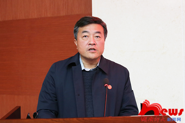 蒋洪新从三个方面报告了2017年主要工作:一是加强学习,认真贯彻落实十九大精神。认真学习领会习近平新时代中国特色社会主义思想;不断吸收借鉴世界一流大学的治校理念;坚持理论修养和学术水平两不误两促进。二是认真履职,努力推进“双一流”大学建设。精心筹划,推动学校迈入国家“双一流”大学建设行列;抢抓大学科技城建设机遇,努力拓宽办学空间;广揽人才,师资队伍建设成效显著;推进资源统筹整合,成效明显;以立德树人为根本,育人成果丰硕。三是严以律己,切实加强党性修养。主要表现在严守政治纪律、坚持廉洁自律等方面。他表示,2018年是学校认真贯彻落实十九大精神的开局之年,也是推进“双一流”建设的关键之年,前景光明,任务艰巨。他相信,在学校党政班子的团结配合与全校师生员工的共同努力下,学校一定会取得新的更大成就。