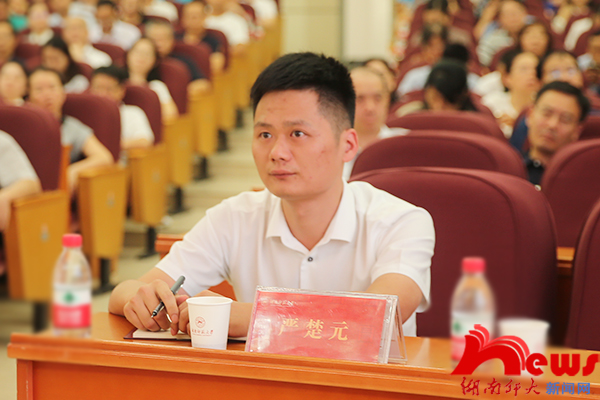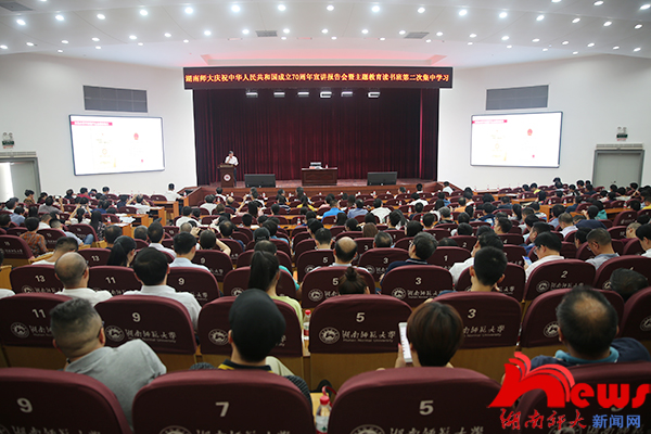 庆祝中华人民共和国成立70周年宣讲团全体成员、全体在职处级干部、各学院学工办主任、各二级党组织教工党支部书记代表、党员代表、学生代表等300多人参加会议。