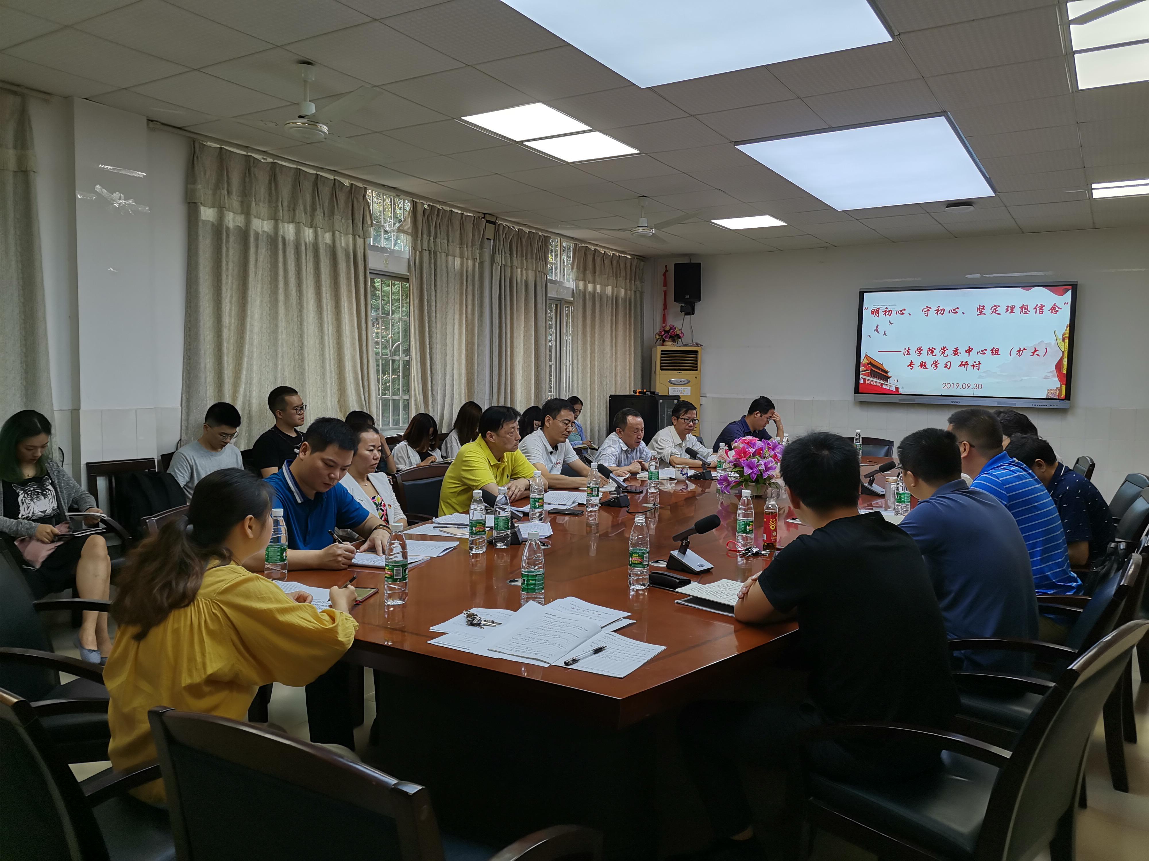 (供稿 法学院)9月30日,法学院党委召开“明初心、守初心,坚定理想信念”中心组(扩大)学习研讨会。会议由院党委书记于烽主持。